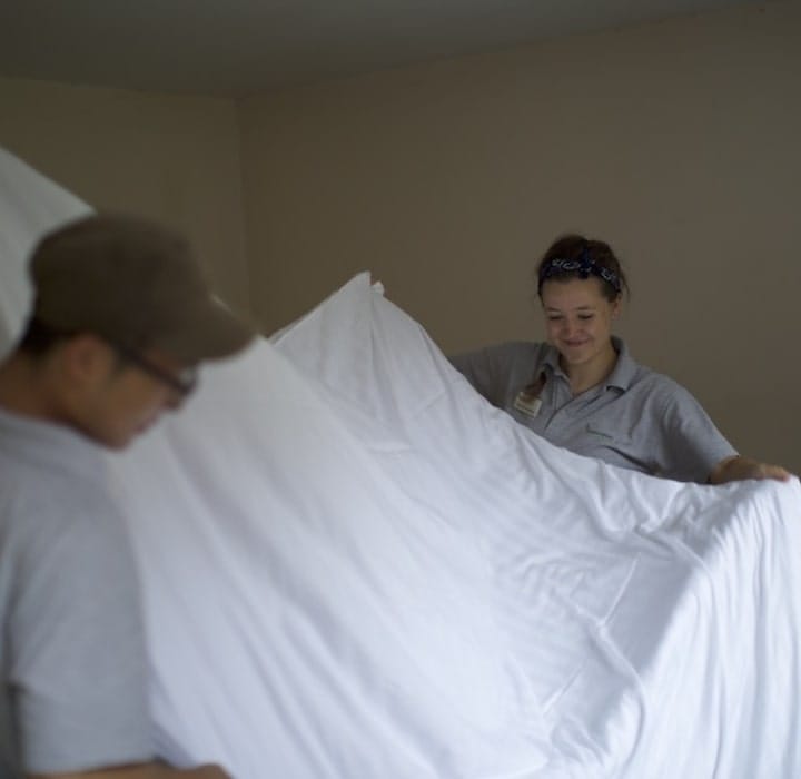 Volunteers share their rooms with 2 – 4 other people. Usually at least one person will have been there for longer than you, so can help you to find your way around. You will have a bed (or bunk) and share a wardrobe and set of drawers. Space is limited so please pack carefully.